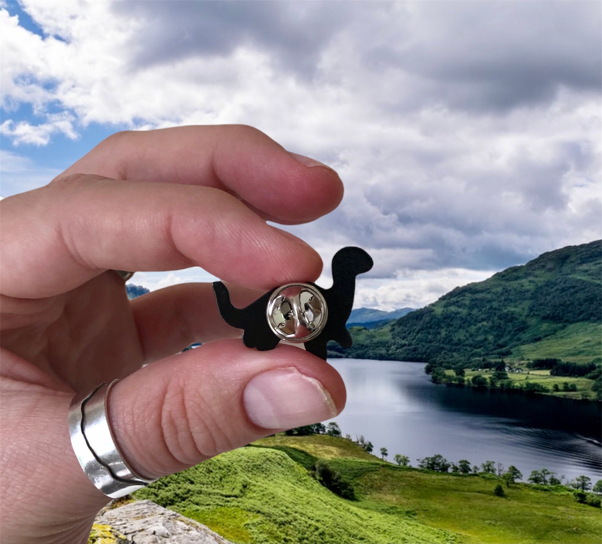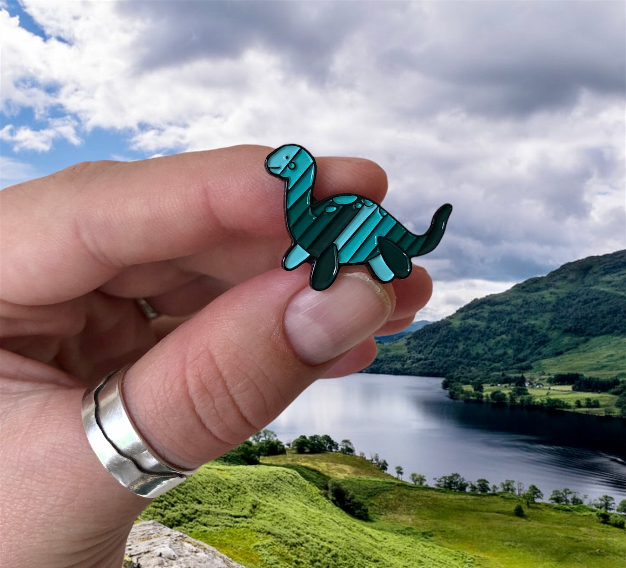 This super cute pin / badge is of the Loch Ness monster in teal tones!