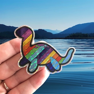 Holographic nessie die cut vinyl sticker / decal / rainbow nessie / Loch Ness monster / stationary / laptop sticker / car bumper sticker