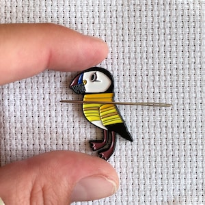 This super cute needle nanny is an original design and would make a perfect gift. It is magnetic to keep your needle in place and has a magnet you place underneath the material.
