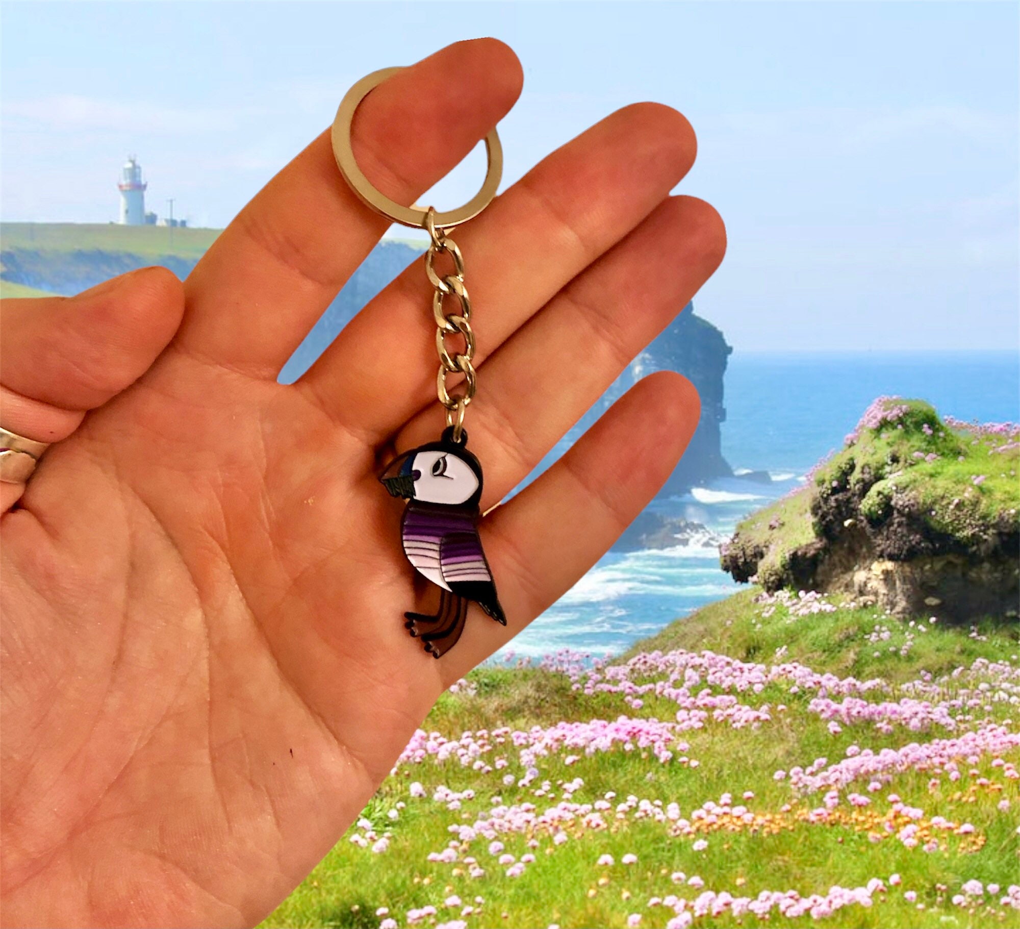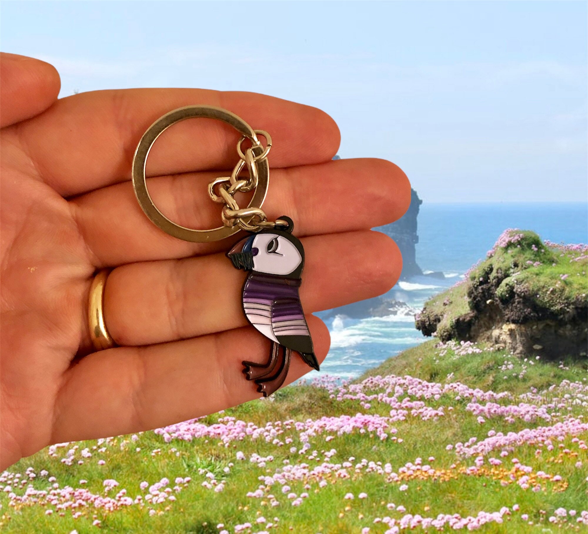 This super cute keyring is of a Scottish puffin wearing a heather coloured jumper!